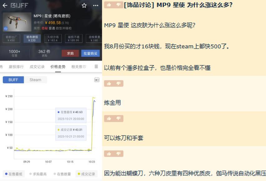 對比早些年,現在CS2飾品價格還是偏高,那些此刻仍想打破頭往裏擠的人,本質上就是在賭——賭G胖不管,賭泡沫不裂,甚至是再次膨脹。