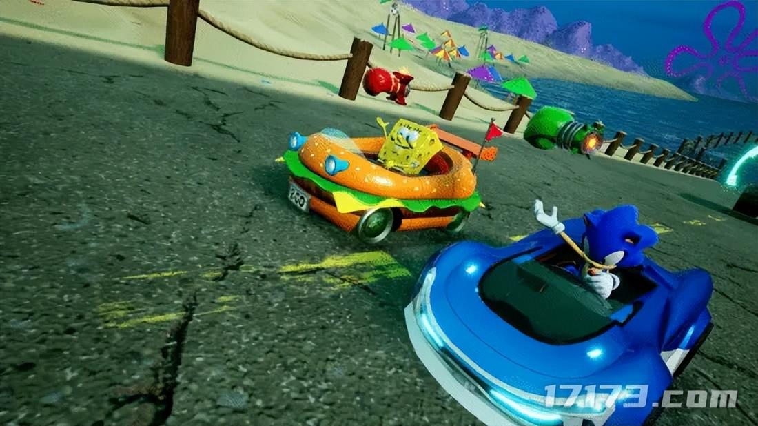 《索尼克賽車:跨世界》海綿寶寶DLC11月19日上線!新增海綿寶寶、派大星車手、比基尼海灘賽道及蟹堡王載具,季票或單獨購買。
