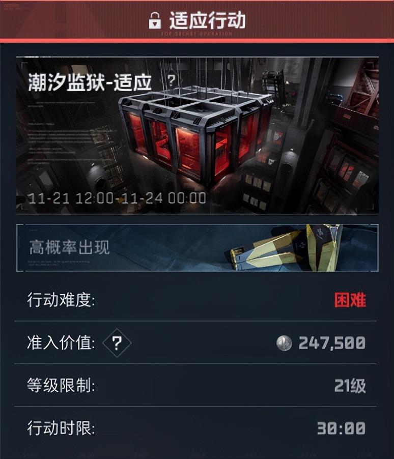 大概是聽到了我們“鼠鼠”的心聲,S7賽季的潮汐監獄,還真端出了一碗“試喫裝螺螄粉”——潮汐監獄-適應模式,可以簡單理解爲“新手友好版”監獄 。它的戰備門檻大幅降低,並且同樣可以摸到海洋之淚和浮力設備之類的高價值物品。這意味着你可以心安理得地進去熟悉地圖、練練手,不用再擔心進去一趟就傾家蕩產,真正實現了鼠鼠“低成本練槍,高收益撤離”的夢想。