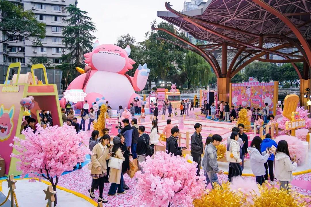 這次在成都,官方不僅搭建了一座胖胖龍好運樂園,還在多個景點、商圈設置了主會場與分會場。這種以賽事作爲契機,在多個場地,開展多個事件的打法,能在短時間內形成巨大勢能,從而吸引玩家注意力,讓大家清晰地意識到金剷剷舉辦了一場盛典賽事。
