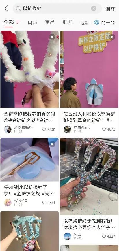 活動只開啓了第一天,網友們「以鏟換鏟」的熱情就進入了高峯期。有人在家通宵做手工,有人起大早去胖胖龍樂園排隊,就爲了換到獎品。還有人專門爲此寫了換鏟攻略,幫更多人達成目標……相關的帖子也在小紅書上越傳越多,衝上熱榜。
