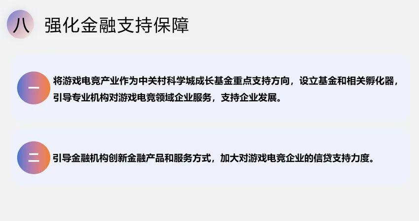 2、引導金融機構創新金融產品和服務方式,加大對遊戲電競企業的信貸支持力度。