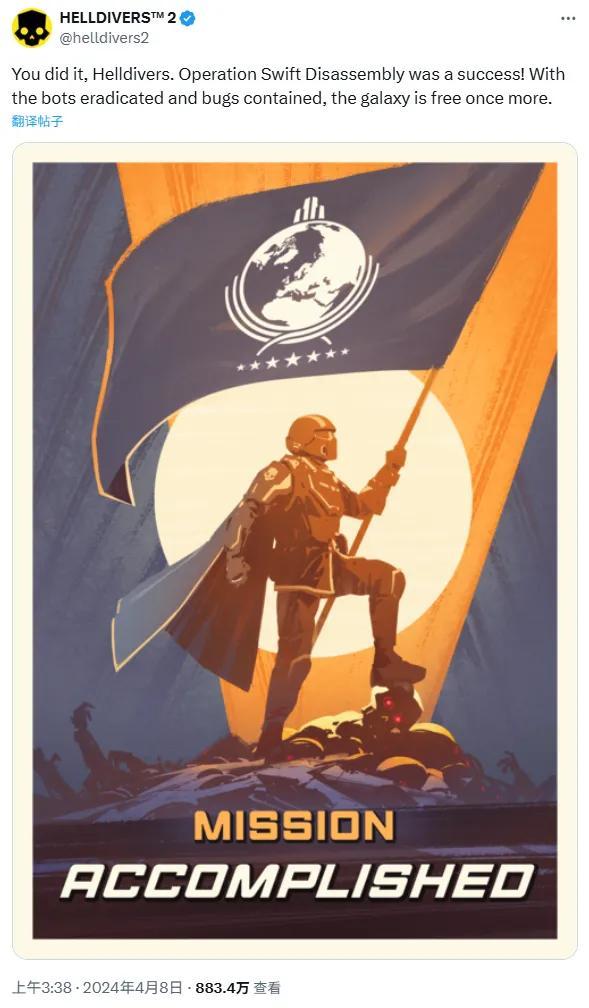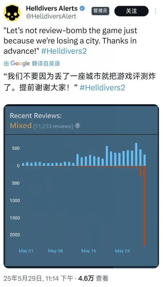靠着這股沉浸感,遊戲本身諷刺戲謔的基調也給社區管理省了不少事。某次更新引發了新的bug?要換別的廠商,估計就是道歉、補償一條龍。他們倒好,隨着上線修復補丁,用“超級地球”(遊戲內極權政府)的口吻發佈了簡報,告訴所有人:一切正常,如果覺得不對勁,您很可能受到了敵方精神控制,請立即接受審查。