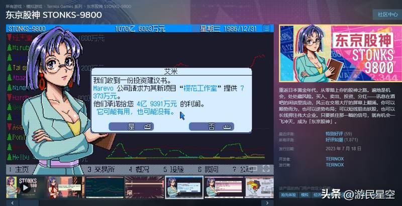在《東京股神 STONKS-9800》遊戲時長超過5小時的時候,你會陷入一股莫名的情緒。金錢的跳動不再能引起你的注意,萬、億也成爲了無聊的本文,你突然覺得這一切都沒有意義,需要什麼來打破這平靜的生財之路。