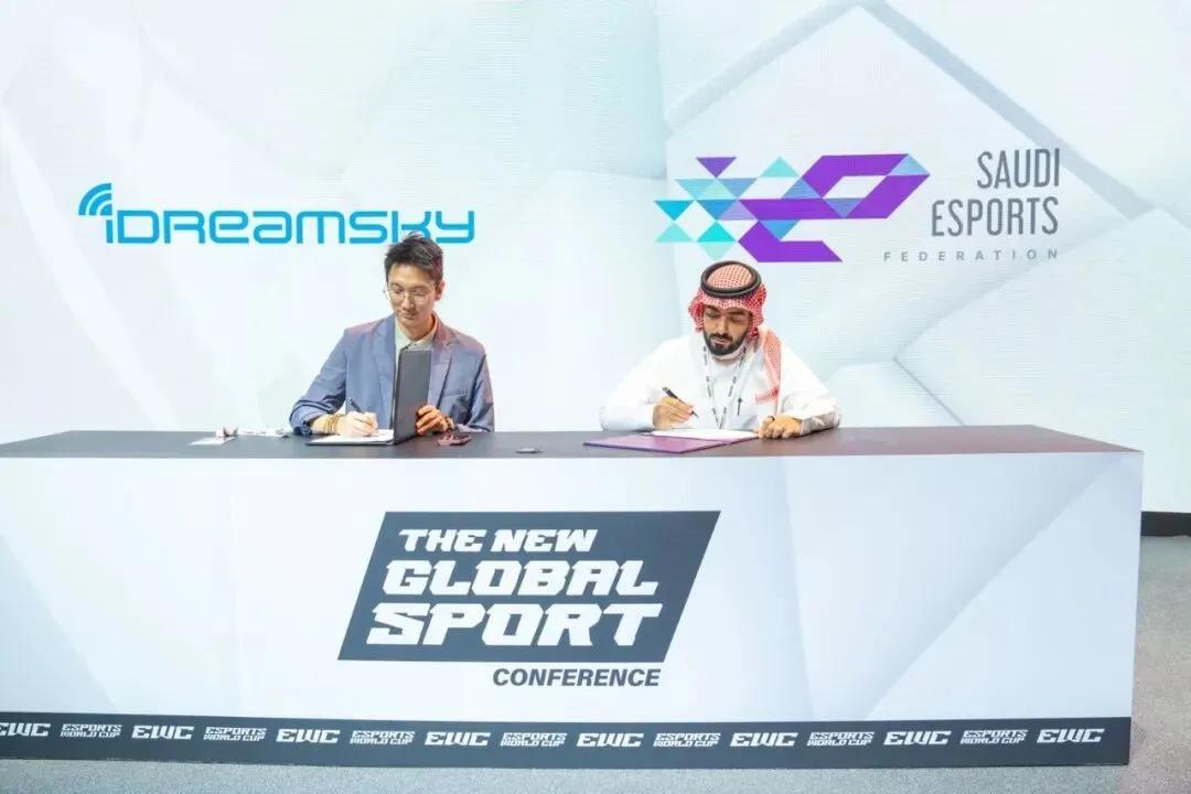 創夢天地聯合創始人兼總裁高煉惇與沙特電子競技聯合會CEO Turki Alfawzan作爲雙方代表進行簽約