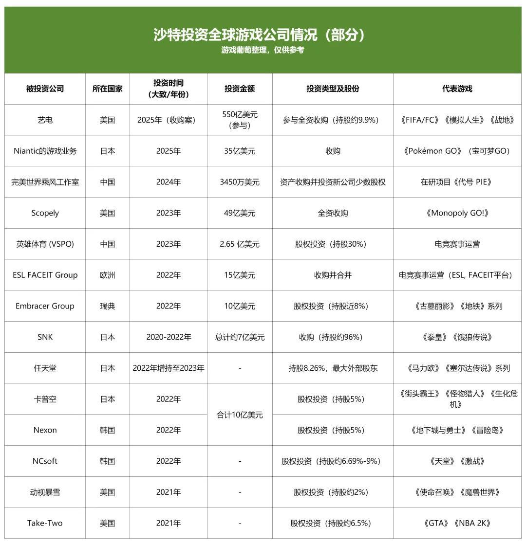 截至目前,沙特投資遊戲公司情況,僅供參考