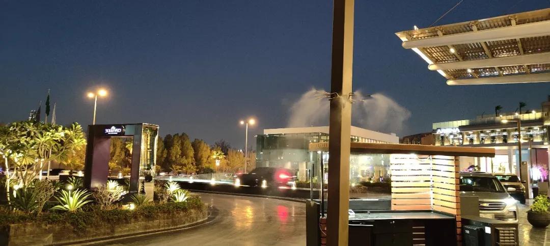 比如我們晚上八九點前往馬斯馬克堡壘時,這裏已聚集了不少散步乘涼的市民,廣場上設有定時噴水的噴霧裝置來降溫加溼。景區門口還安排了不少工作人員,專門提醒遊客不可使用專業相機拍照。