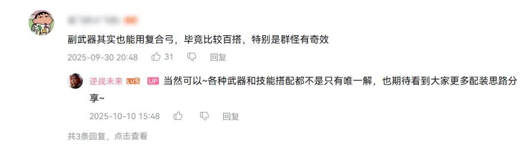 而且隨着玩家們的組合嘗試,經常會出現有人說這個槍好像很厲害,那個槍目前也不錯……社區裏大家討論的也不怎麼升戰力,而是這把槍怎麼配裝、這個副本怎麼打。