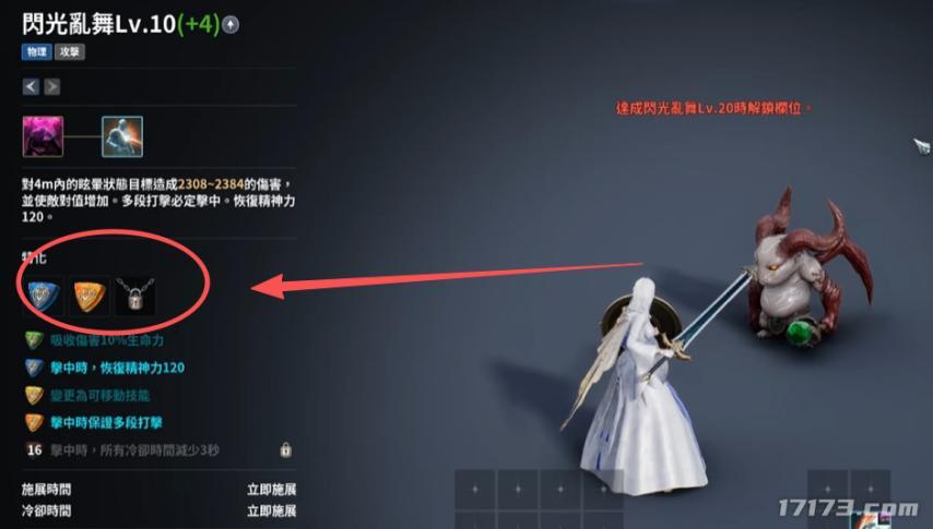 而在技能達到一定等級後,玩家還能選擇附加的特化效果,賦予技能更強的效果,或改變技能形態。