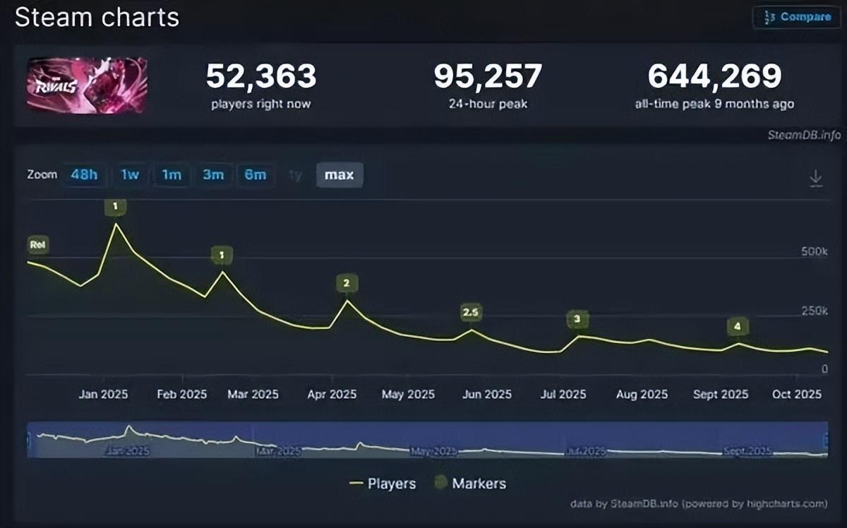 遊戲的後續表現也正如小弟感受的那樣,僅僅幾個月過去遊戲在線人數就暴跌,流失超8成玩家。從巔峯時期的64萬人在線到如今的幾萬人。