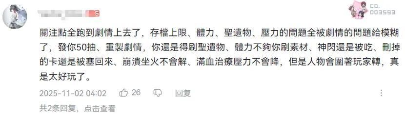 以爭議劇情爲例,喫瓜的不僅未接觸過遊戲的,還有不少《卡厄思夢境》自己的玩家,原因是“壓根沒仔細瞅”,一心撲在組牌刷本上。與此同時,另有一批玩家在強調不要過度關注劇情,而應該把精力放在那些會影響組牌體驗的“小環節”上。