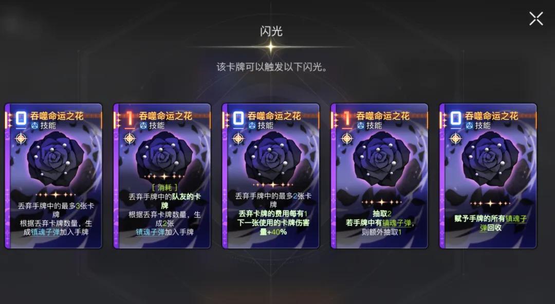 具體些講,“閃光”會在戰鬥中隨機出現並“改變卡組”,“主戰員閃光”是獲得該角色的獨特卡牌,“卡牌閃光”是增強效果或給到新機制的分支卡牌三選一,“物主之閃光”則是在卡牌閃光的基礎上增加附屬效果,每種新增/改變都可能與其他卡牌的機制串聯,形成千變萬化的大連招。過程中大家自由選擇,打造自己喜歡的思路。