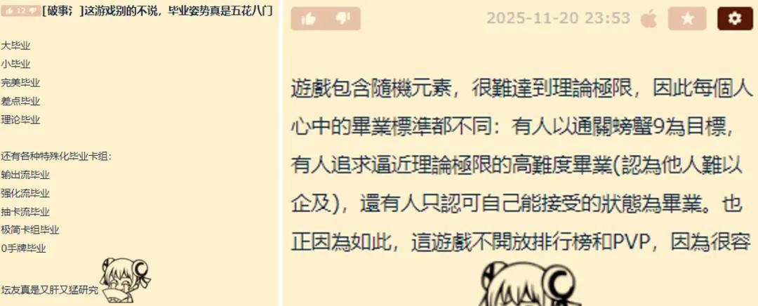 當大家在嘗試組合的過程中有了一個方向時,就會爲此去投入時間刷,去探尋極限,最終達到讓自己滿意的嗨點。再然後,這種循環驅動還會造就濃厚的社區交流氛圍,因爲玩家花了時間精力打造出自己的套路後,有更強的分享討論意願,對應引動其他玩家嘗試。