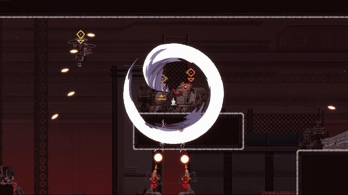 “我們之所以在演出上投入精力,是因爲《閃避刺客》的結構從某種角度看非常傳統和簡單:即遊玩—過場—遊玩—過場……因此,必須在這些短暫的過場瞬間緊緊抓住玩家的沉浸感,只有鏡頭演出和像素演出等做得非常出色,玩家才能沉浸其中”。