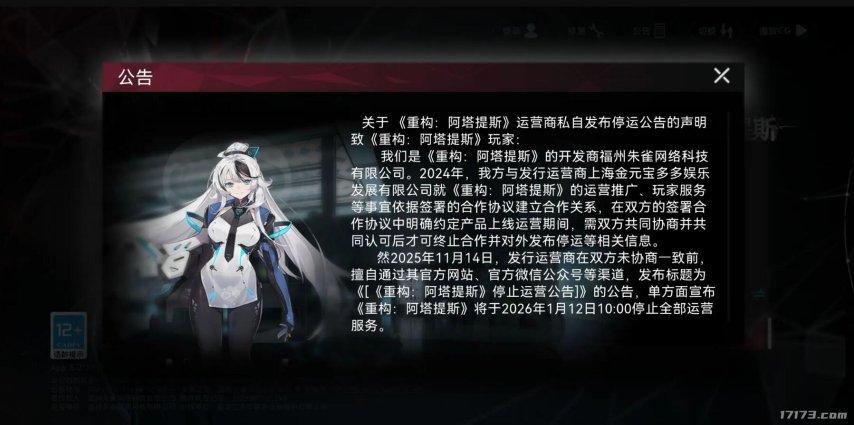 2024年12月23日遊戲開啓公測,在今年的11月14日宣佈,由於運營策略的調整,遊戲將於11月14日起停止新內容開發, 12月31日停運。