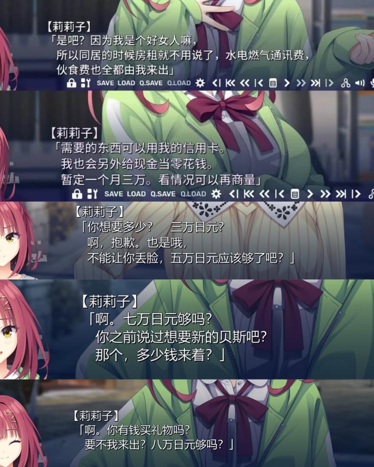 “你怎麼找我要錢啊?你窮我也不可以給你啊。如果是我攻略你的話,我可以花錢給你買禮物啊,但是你直接找我要錢那成什麼了?旮旯給木里根本不會這樣!沒有說誰因爲我給他錢就跟我好的,這不是戀愛!你把這個當成什麼了?!如果是你攻略我,你也不能找我要錢啊!你找我要錢我好感度會跌啊,你是不是根本不在乎我對你的好感度!那你就不是來攻略我的,你是來騙我的錢。”