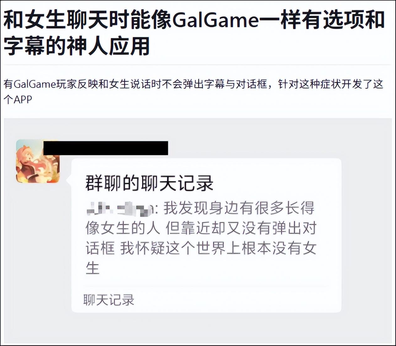 所以與其說嘲諷刻板印象、說 Galgame 讓人認不清現實,不如說大家是藉着一個抽象梗,把難以啓齒的話重新說出來: