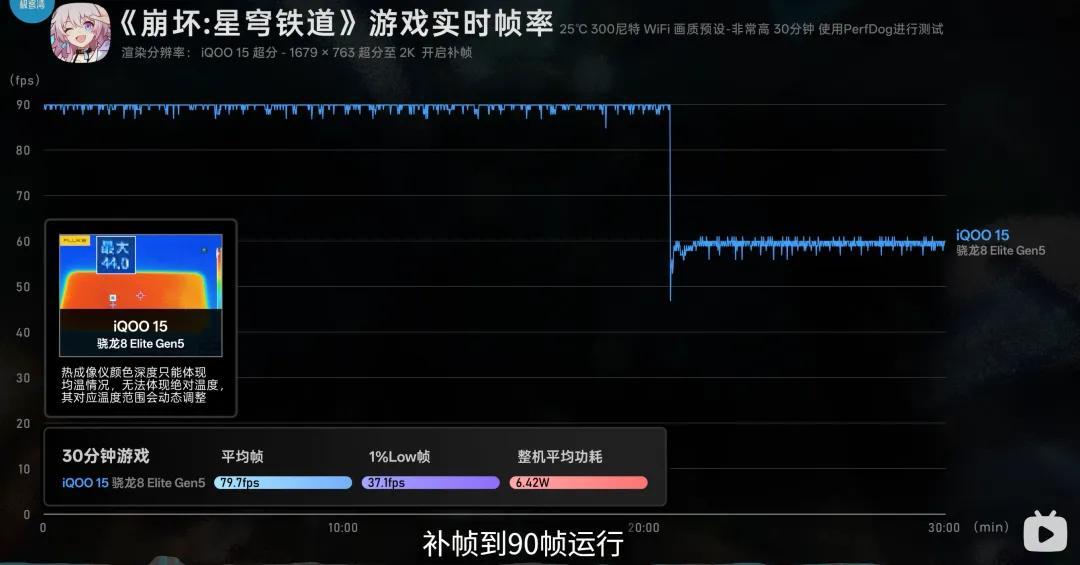從測試跑分數據來看,144幀模式下《王者榮耀》的實時幀率平穩得近乎一條直線。畢竟對於第五代驍龍8至尊版這顆芯片來說,運行《王者榮耀》時跑滿144幀算得上是基本操作。哪怕是面對《崩壞:星穹鐵道》《鳴潮》這類高負載遊戲時,這套硬件組合也同樣撐得住場面。