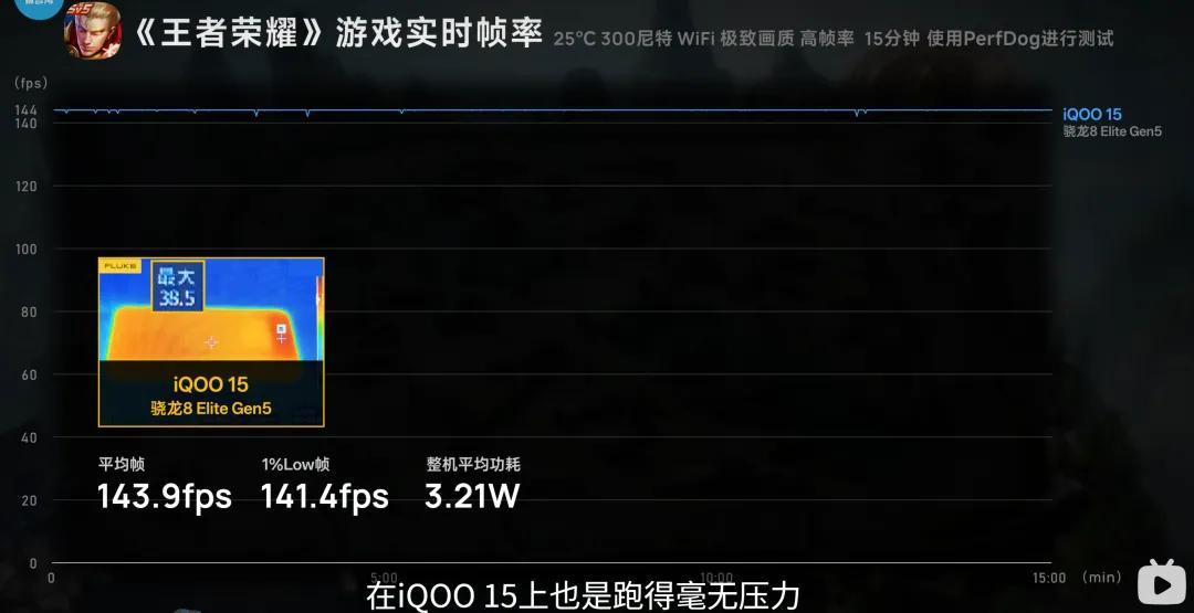這種投入的成果很直觀。搭載了驍龍888的iQOO 8曾首發《王者榮耀》120幀模式,而如今搭載第五代驍龍8至尊版的iQOO 15,則成爲了首款運行《王者榮耀》原生144幀+極致畫質的手機。