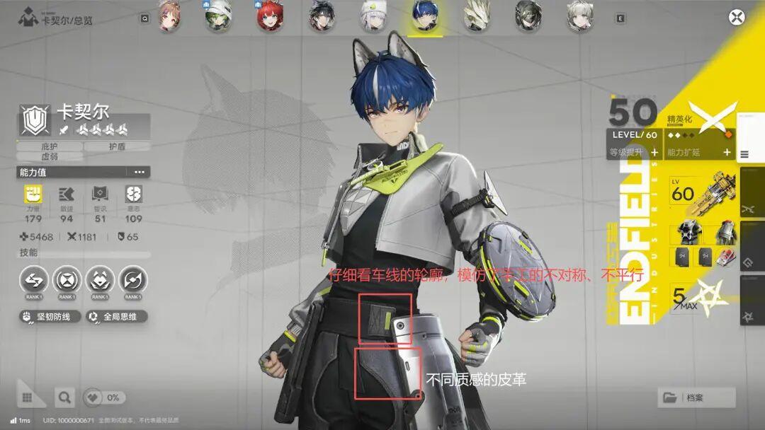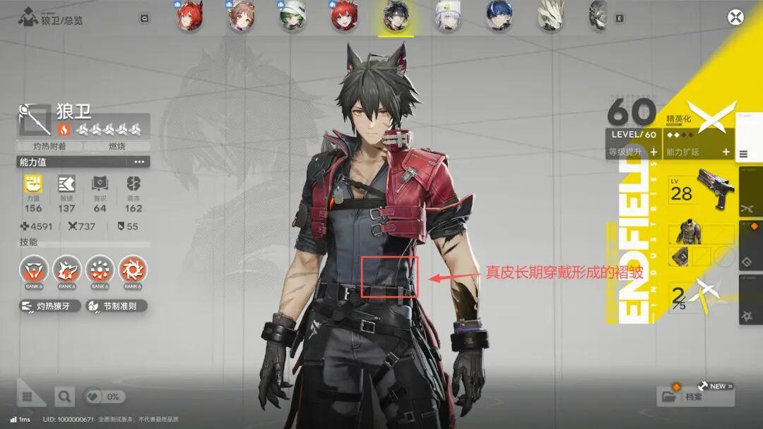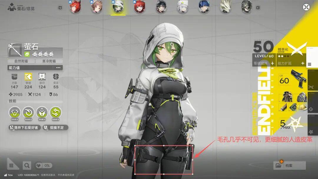 假如你身邊有機車皮衣的發燒愛好者,可以拿截圖讓他評價下終末地裏,皮革建模的水平。他會告訴你,首先能看出,不同衣服用的皮革不同,能看出源自不同真皮,有些則是PU皮。而真皮上能看出毛孔和紋路的還原,因爲真皮是自然生長,所以紋路不規則,且會因爲重力被拉長……