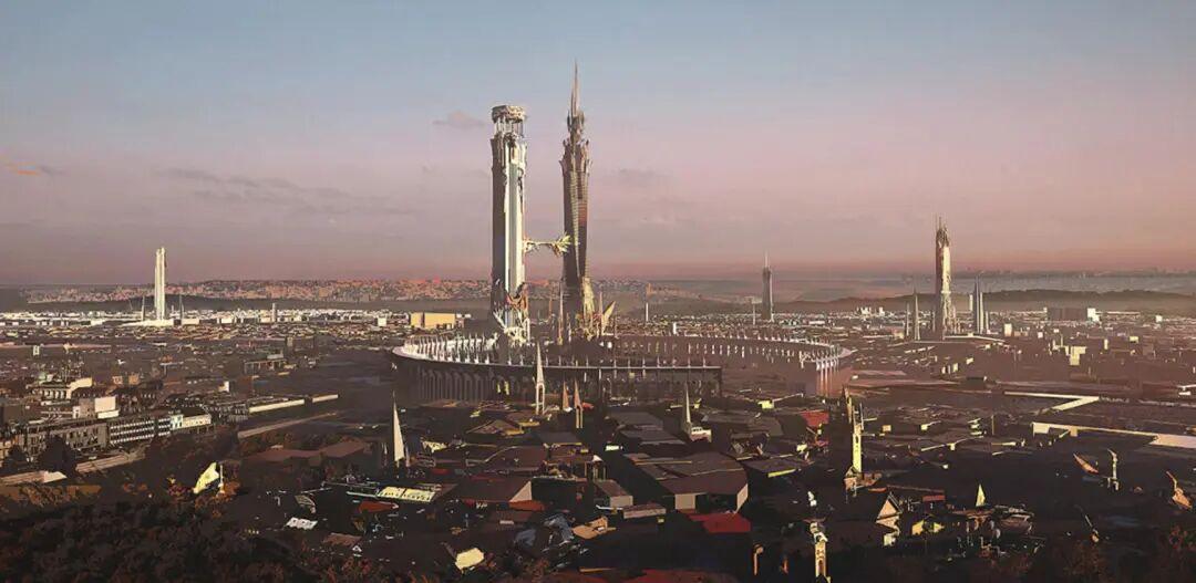之前挺出名的中國科幻插畫《中國2098》也是如此:巨構、幾何形、連續的金屬與巨石,透着超級重工的氛圍。
