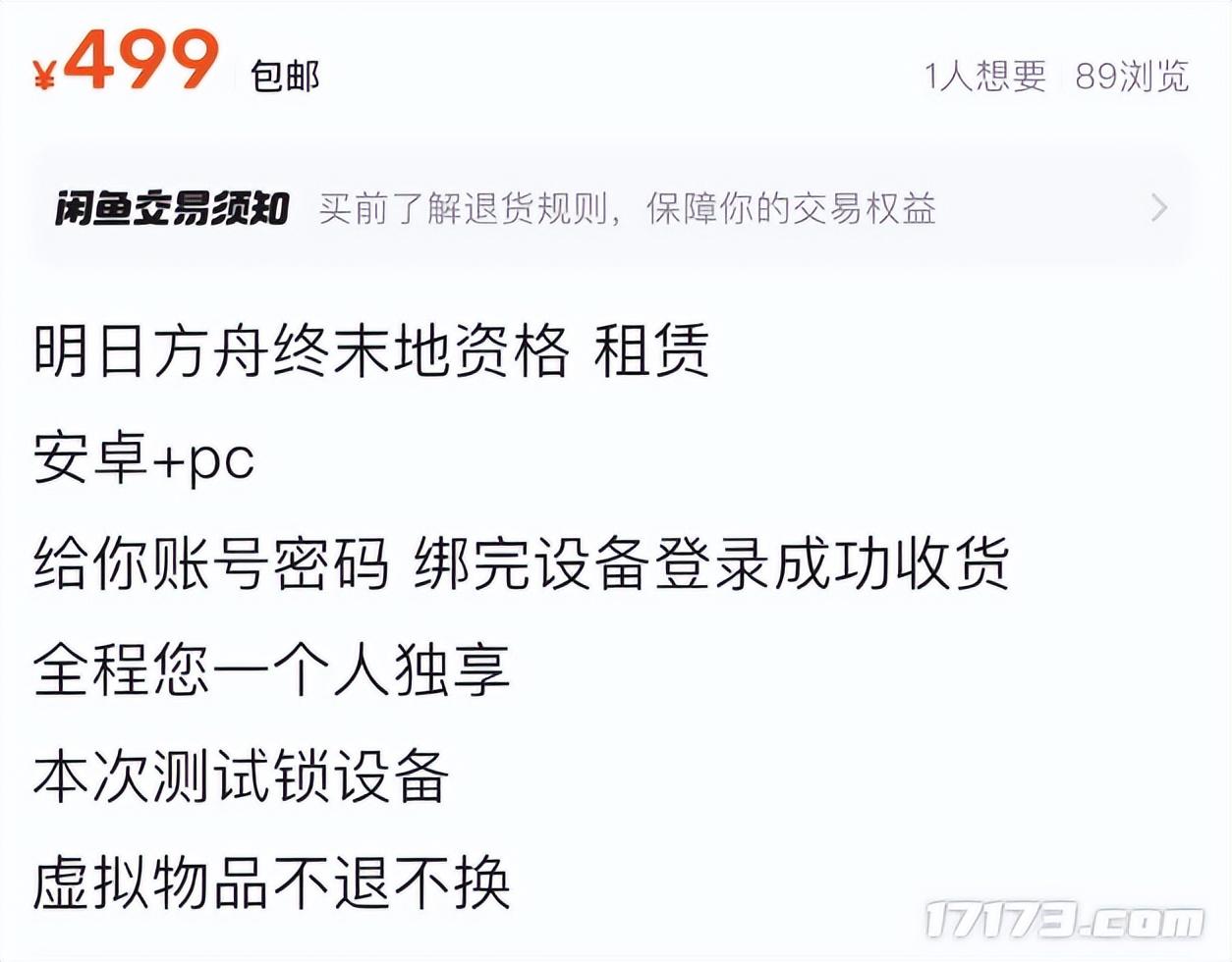而在二手市場上,《明日方舟:終末地》更是排面拉滿,在某魚,一個測試賬號就能賣到300-500不等的高價,而且這只是租號,買號價更是開出了1000的誇張價格。