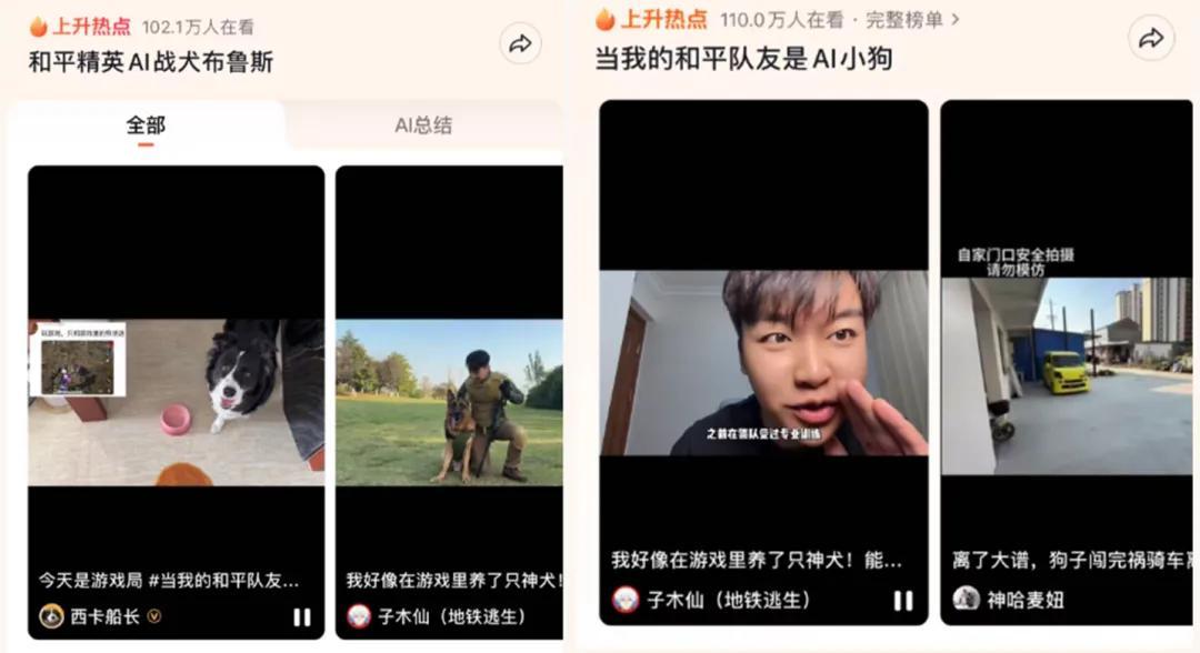 大量的二創作品和多個關聯熱點議題已經說明,AI戰犬的趣味應用給玩家帶來了新的體驗,也成功刺激了又一輪的生態活力增長,爲《和平精英》的長青提供了養料。