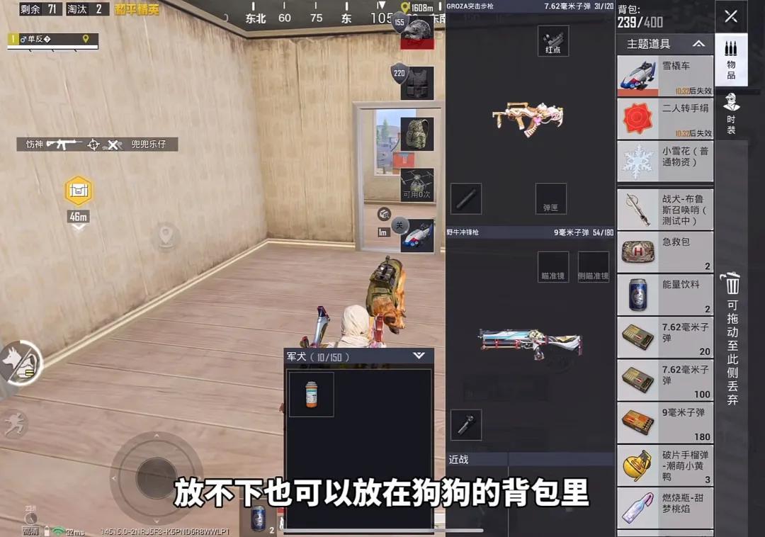 又比如說,如果手上缺子彈了,給戰犬-布魯斯下達指令“幫我取5.56子彈”,它也會飛奔出去,帶着你所需的資源回來。由於戰犬-布魯斯自身揹包容量有150格,其存在本身就是一個隨身彈藥庫,原地擴展玩家揹包。