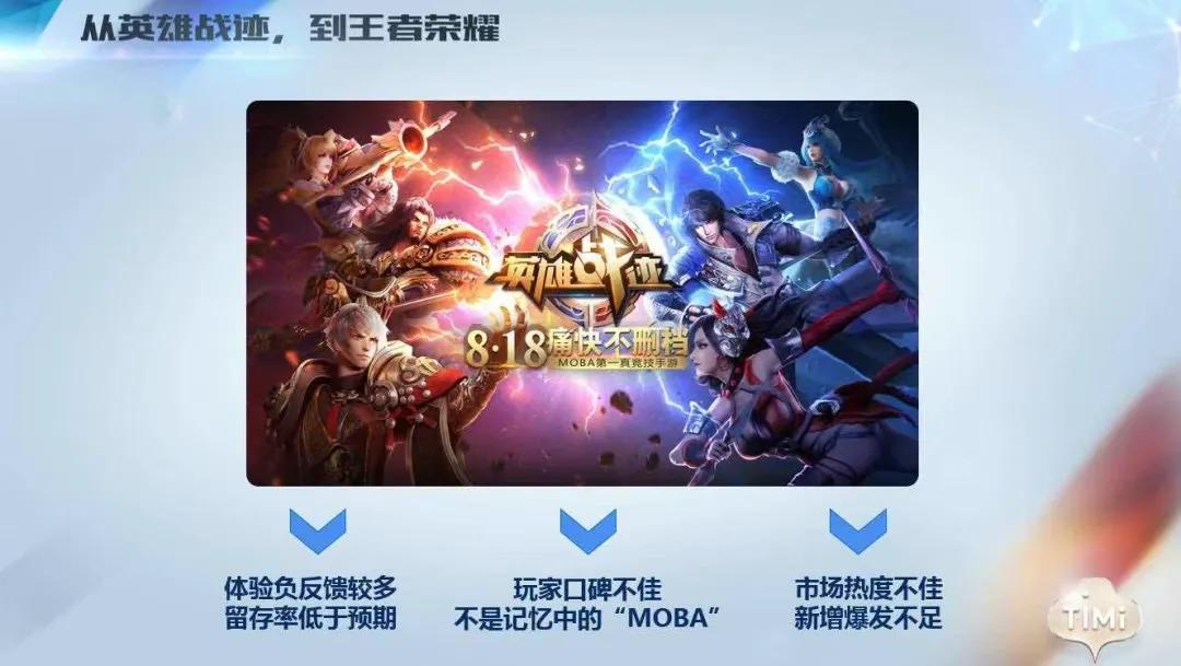 當年《王者榮耀》的前身《英雄戰跡》上線時,長線留存一度堪憂,數據指標達不到騰訊內部最高的六星級標準,產品還存在大量基礎體驗的問題。