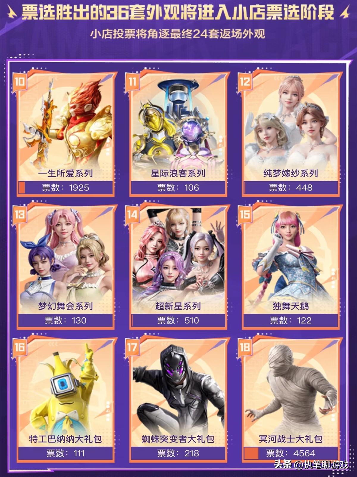 作爲最受歡迎的遊戲外返場方式,和平小店也會採用人氣票選的規則,至少有24套不同系列出場,希望到時候不要像這次元旦票選那樣,幾乎全是“老演員”吧,嘿~