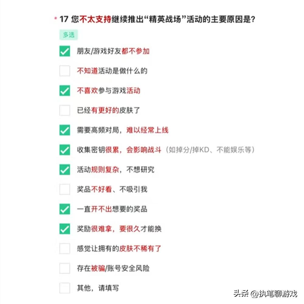 其中還有關於後續繼續推出“精英戰場”的詢問,當回答“不太支持”後就會給出以下選項,我們一起來看下。