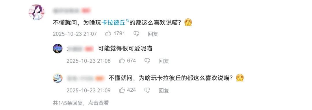 葡萄君:提到社交場景和情緒價值,我發現《卡拉彼丘》玩家在聊天頻道里意外活躍,都在發「喵語」。