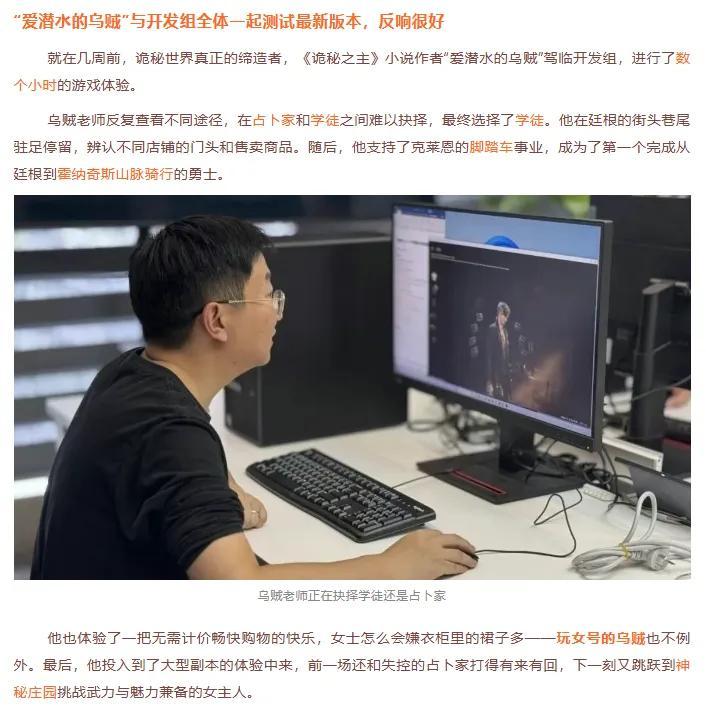此外,他們也邀請原著作者“愛潛水的烏賊”試玩了內部測試版本,並表示玩家測試乃至公測即將到來。