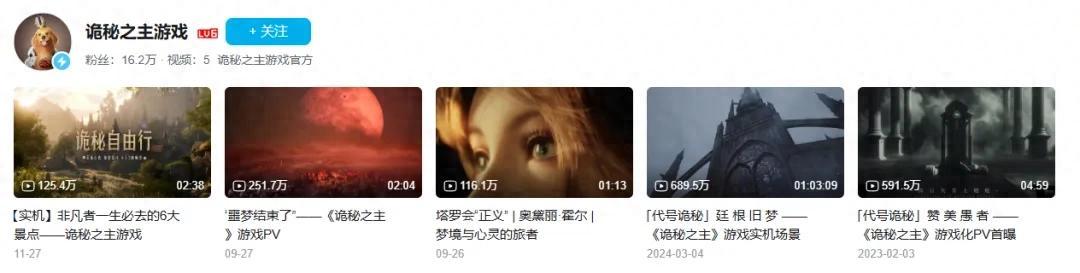 而在彈指宇宙的產品矩陣中,最受關注的自然是用UE5研發的MMO產品《詭祕之主》。它背靠現象級大熱IP,自2023年首曝以來,每次新的PV或實機都能在B站收穫百萬播放。