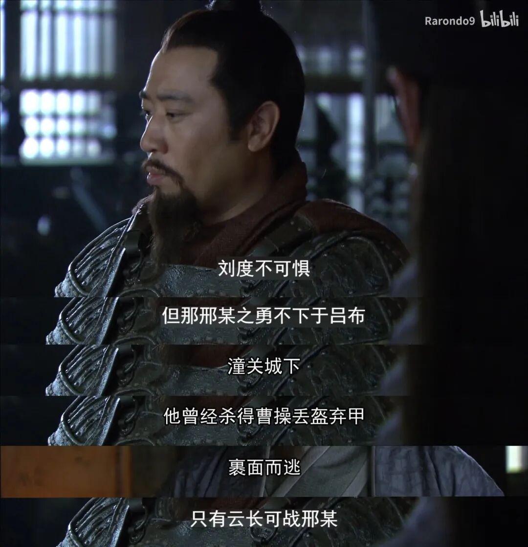 邢道榮的演員是話劇出身,演技不錯。戰前豪言壯語:“說出吾名,嚇汝一跳,我乃是零陵上將軍邢道榮!”,結果出手不到一回合就被生擒,跪地痛哭求饒。