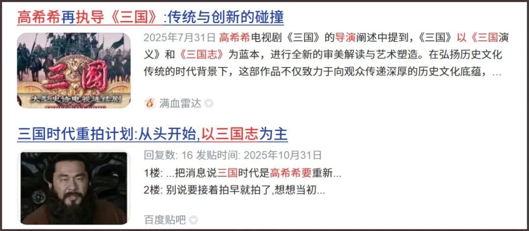 不過給大家講個好消息:聽說接下來高希希導演要以《三國志》爲藍本,做一個類似於權力的遊戲,這種多視角的一個大型的三國影視劇。