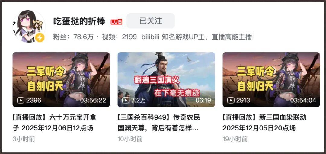 如今主播都在看的「折棒」切片,已是大浪淘沙後的結果——他本來就是三國殺頂流,粉絲體量直接碾壓整個新三圈子。