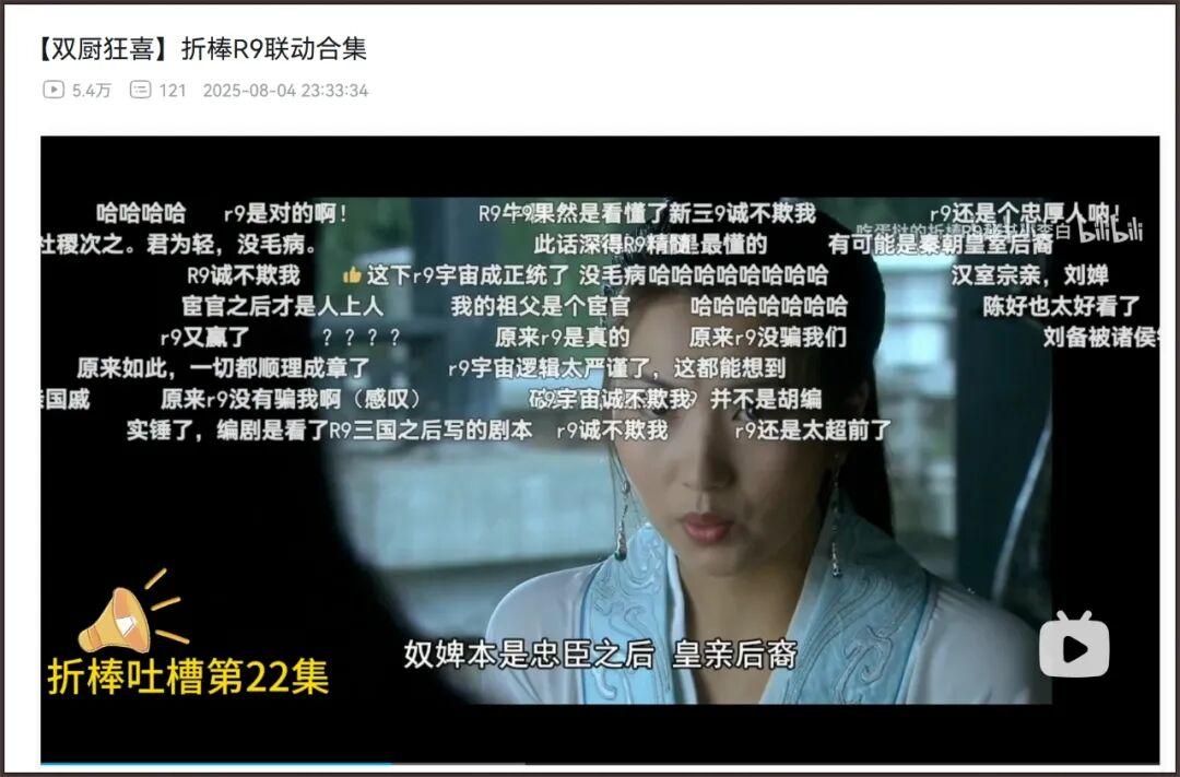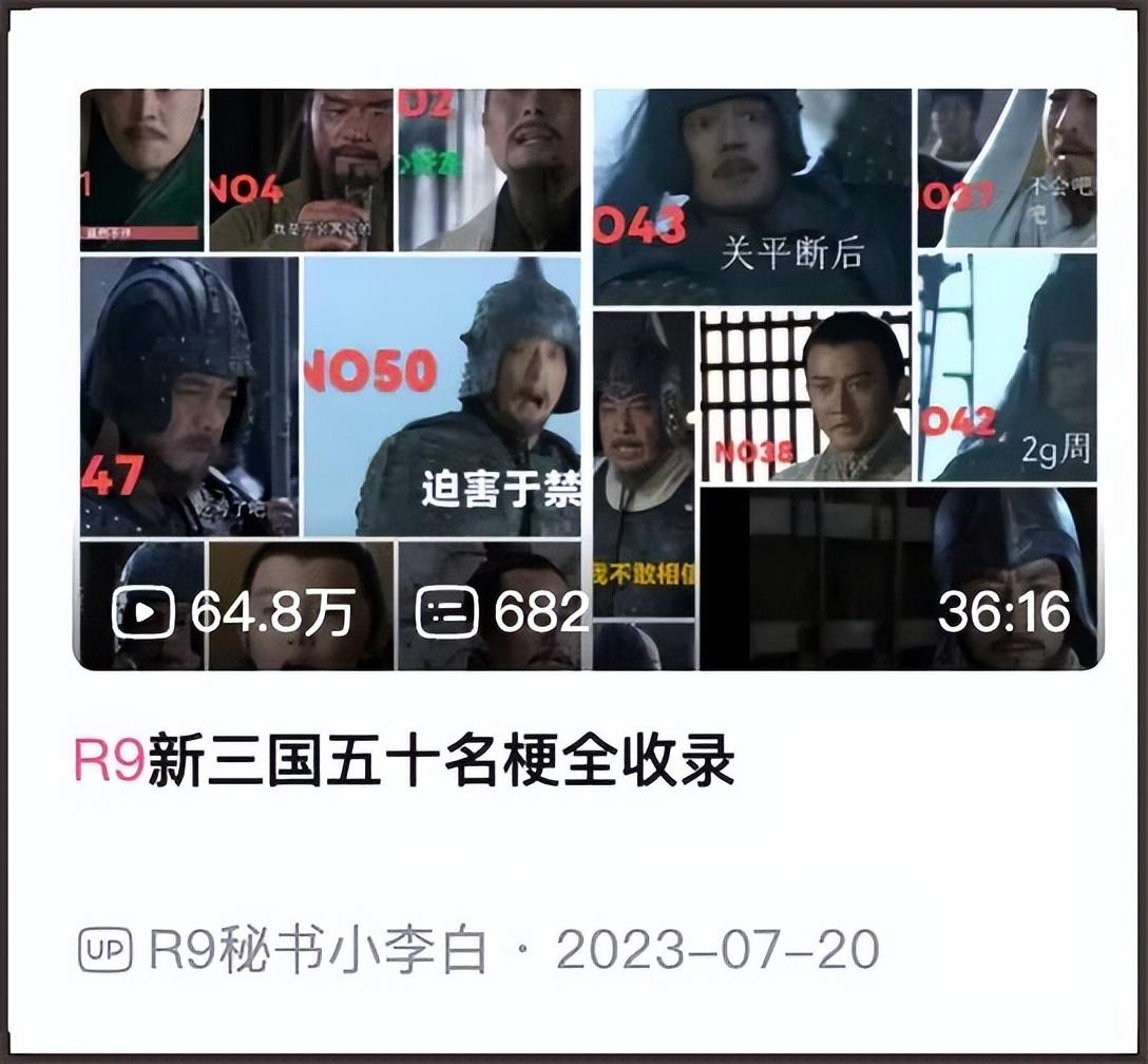 R9出現之後,畫風直接變了:原本被吐槽的爛臺詞,變成了搞笑梗;原本被罵到臭的劇情,被他剪成了鬼畜神作,成功引流了大批沒看過新三國的路人觀衆。