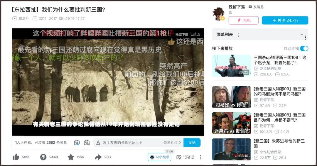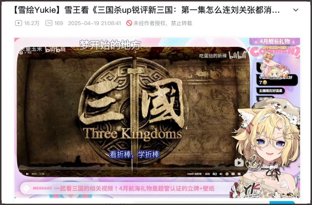 這兩天很多人茶餘飯後,不約而同點開“UP主銳評新三國”系列視頻,作者是三國殺的頂流主播“喫蛋撻的折棒”。