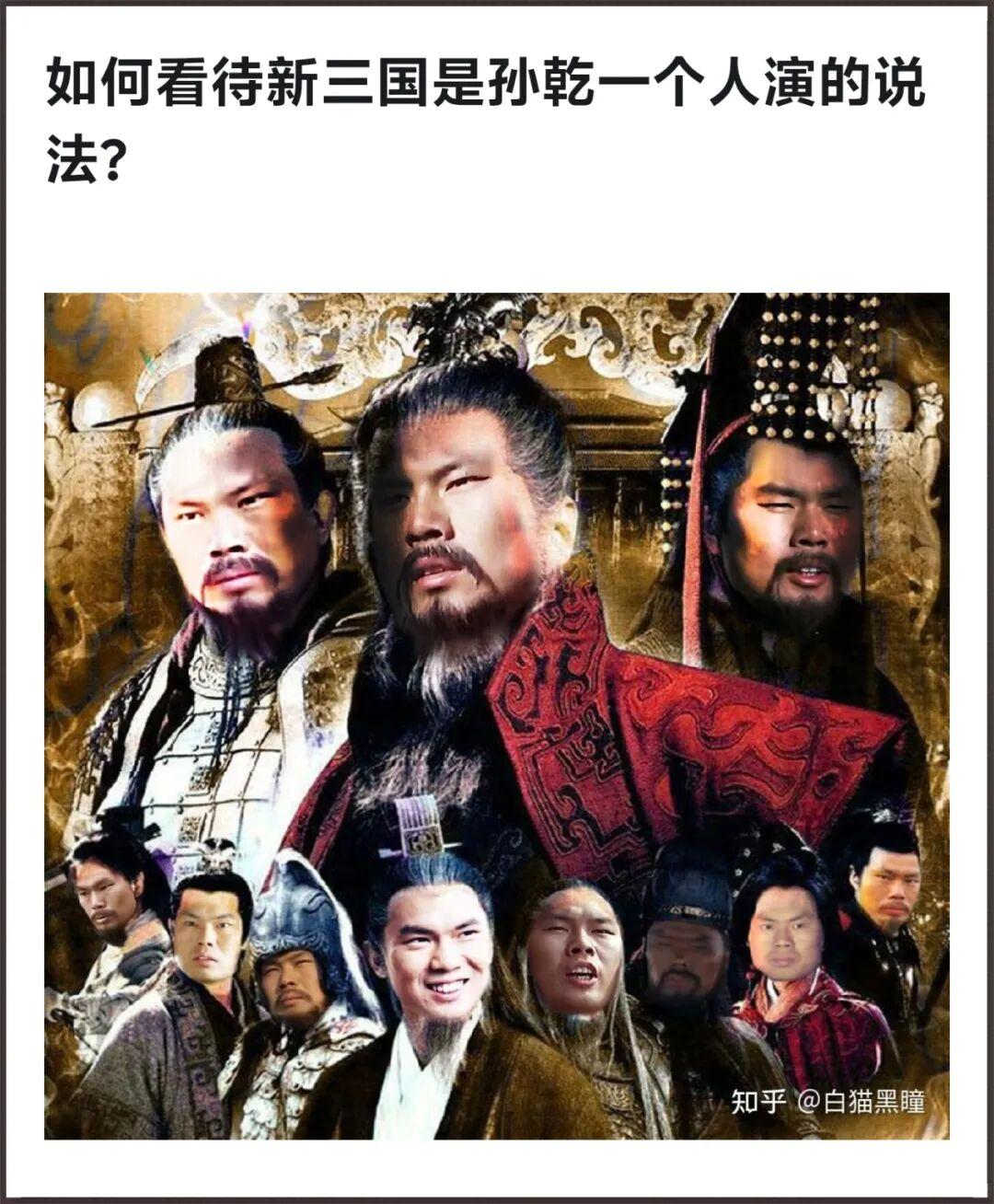 要知道,新三國有一個被人詬病的點在於頻繁使用替身,而且替身的鏡頭非常敷衍。網上有個梗叫“新三國是孫乾一個人演的”,爲什麼呢?