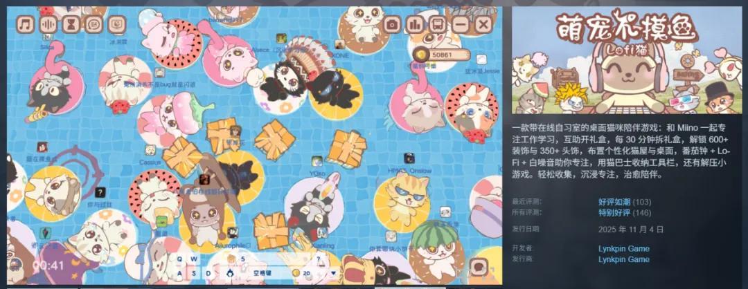 開頭提到的《貓貓釣遊記》就屬於第一個分支,製作一個Q萌的貓貓釣魚場景,配合大量的魚類圖鑑和出貨條件、一定的升級路線,就能構建一個非常殺時間的桌面放置玩法。