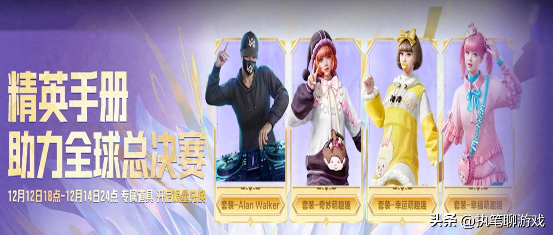 目前已經公佈的名單裏,我們可以看到經典套裝Alan Walker、奇妙萌趣趣、幸運萌趣趣、幸福萌趣趣以及頭盔、揹包、降落傘、掛件、夥伴Chan與Kun,最後還有一套銀刃勇者大衣。