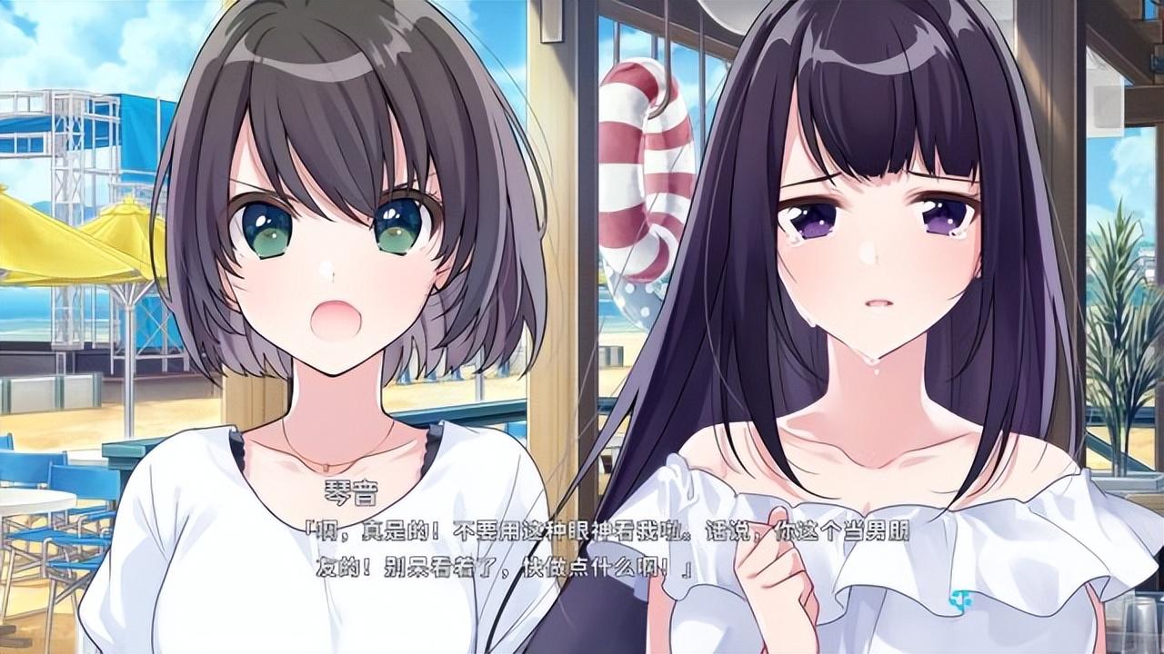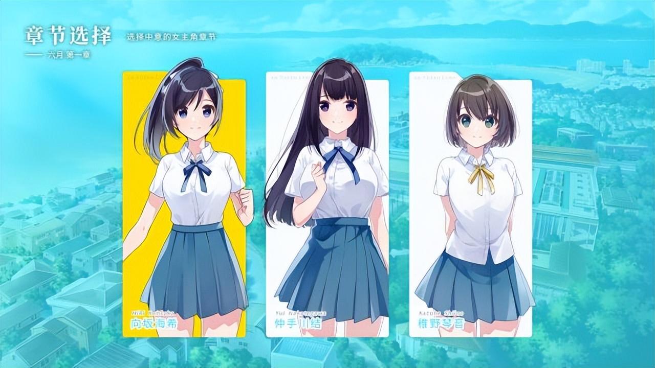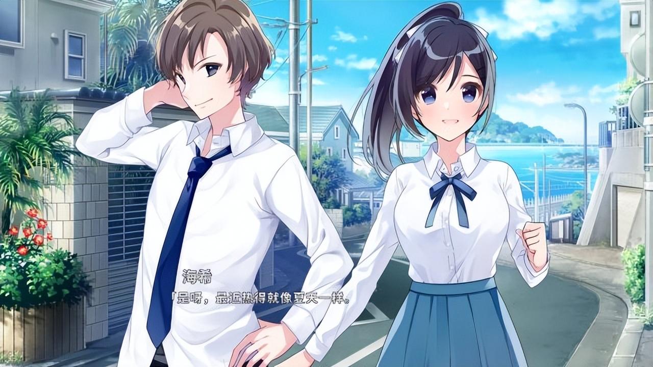 儘管作爲一個距離“青夏”這個詞稍微遙遠的玩家,我上面這段對於劇情的描述稍顯油膩,但遊戲本身還是非常清爽的,藍色爲主基調的畫面和海邊的美麗小城讓人心曠神怡。妹子們的裝扮和髮色也是那個純真年代的樸素學生妹,沒有辣麼多奇奇怪怪的裝飾和髮色。配之以的溫柔寧靜的鋼琴曲,確實非常有夏天和青春的感覺。這種感覺也不僅僅體現在畫風和配色,還體現在比如補充了很多女角色視角的故事來展現戀人關係的青澀感,還有“心跳聲”的音效特寫(一般萌拔的背景音特寫是啥懂得都懂)。