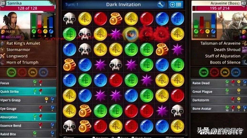 這種一次選中後無限次移動的消除方式再融入隨機性拉滿的肉鴿機制,幾乎給予了玩家無限的可操作空間,也極大加深了遊戲的策略深度。
