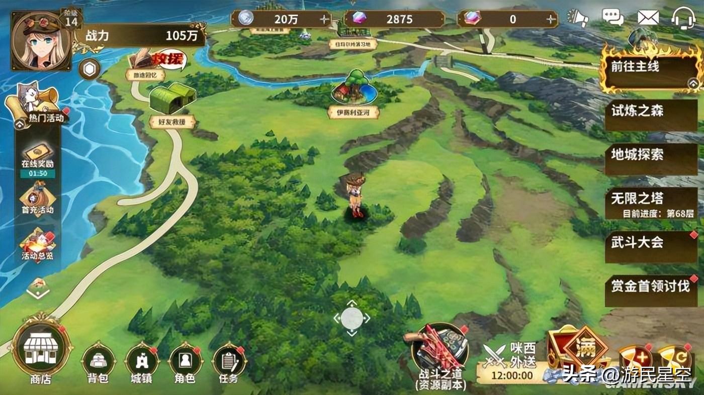 而隨着進度提升,玩家便會解鎖各種五花八門的玩法。比如包含輕度肉鴿元素的試煉森林、帶有傳統JRPG醍醐味的“地城探索”玩法、帶有爬塔模式的“無限之塔”等等,這些玩法不僅能產出養成材料,在前期充當主線之外的調劑品,給玩家提供一定的新鮮感,更多的作用還是豐富遊戲的後期內容,在一定程度上減緩長線運營遊戲進入長草期時的枯燥感。