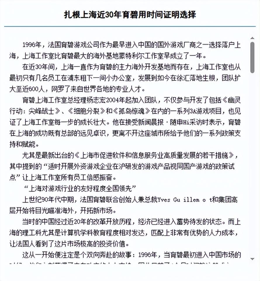 最典型的例子就是在90年代,外資進入中國通常是以“中外合資”的形式,但爲了吸引育碧,上海政府卻“破例”批准育碧成立了獨資企業。