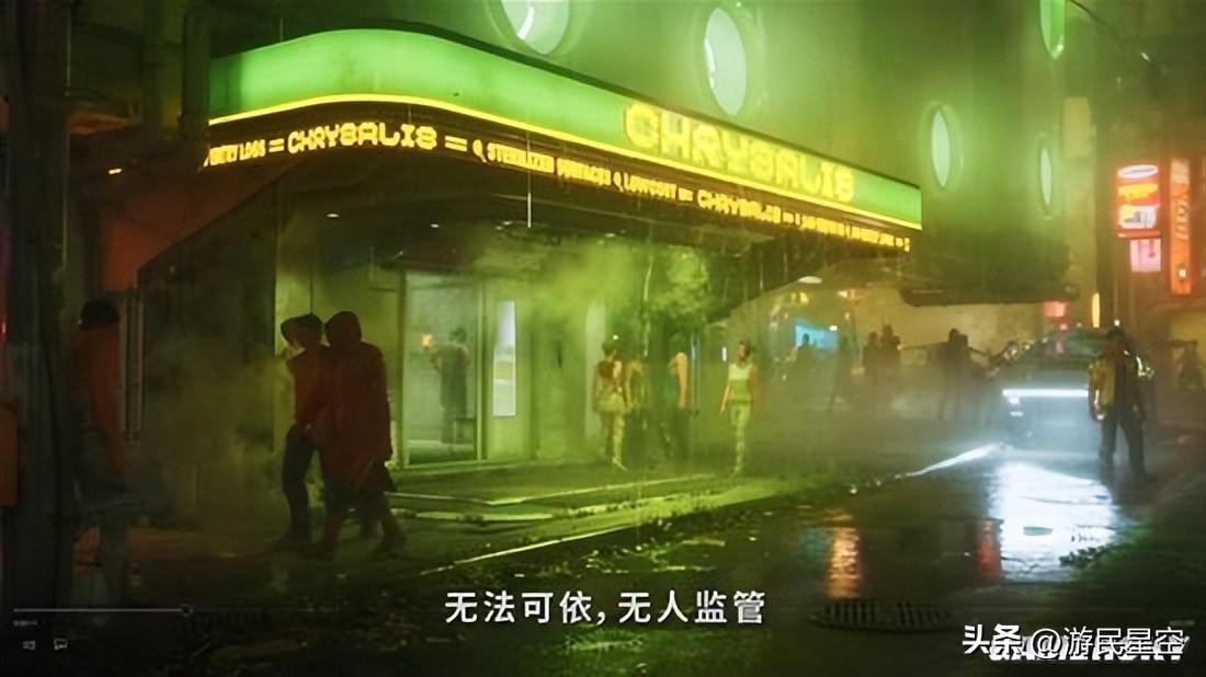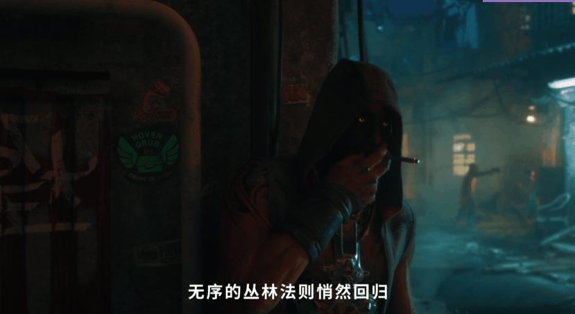 在播放這組鏡頭的時,主角的自白也在緩緩補充這座城市,或者說遊戲世界觀的整體設定:“慾望港”不屬於任何人,這個地方沒有法律、沒有監管,整體處於權威機構失靈的狀態,只剩下赤裸裸的叢林法則。