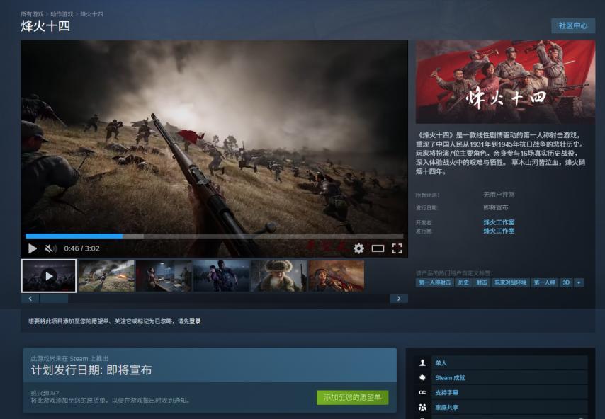 最近國產抗日新作《烽火十四》預告一出,就在B站猛衝百萬播放,架勢挺猛。按照官方介紹是一款線性劇情驅動的第一人稱射擊遊戲,背景就是1931到1945年那十四年烽火歲月。