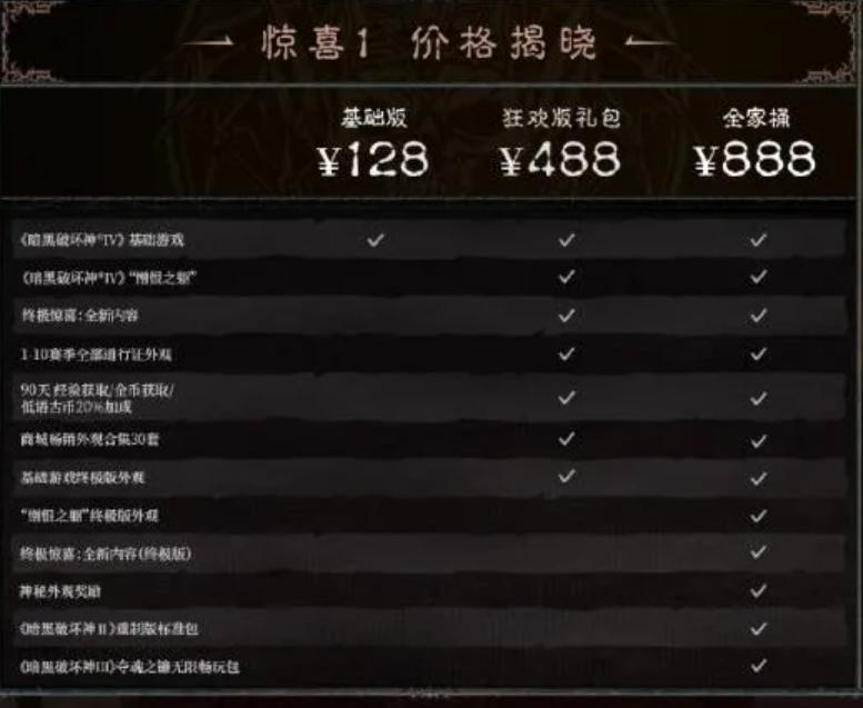 遊戲提供了三個版本讓你選:想先嚐嚐鮮的,128元的基礎版就夠了;打算長期“肝”下去的,488元的狂歡版禮包更划算;如果你是全家桶愛好者,那888元的頂配版就是爲你準備的。