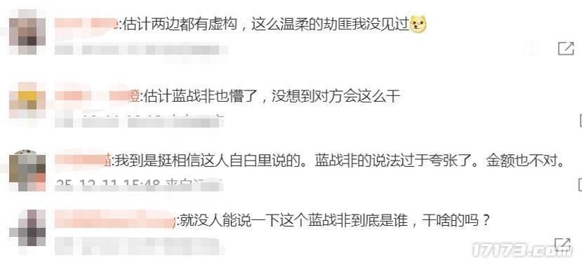 12月9日藍戰非發文說,在非南的開普敦遭遇有預謀的綁架,對方是一箇中國人兩個黑人。他不但被勒索,還被擼網貸,爲防止藍戰非事後報警,綁匪甚至還收集大量足以僞造他“強姦罪”的生物信息。